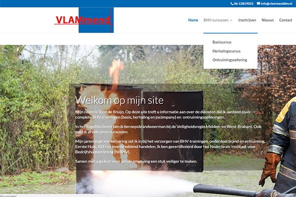 Toon de Bruijn van Vlammend BHV wilde een website waarop men eenvoudig zijn diensten kon raadplegen en zich kon inschrijven voor BHV cursussen. Met-KX heeft